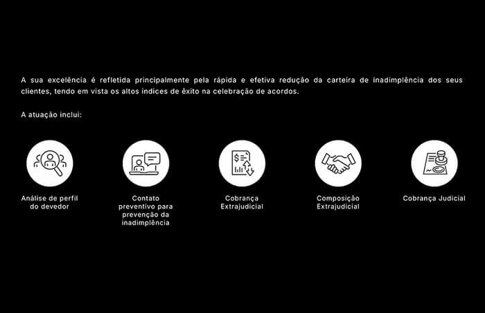 Site desenvolvido para um escritório de advocacia localizado em Santa Catarina. Com o direcionamento do CEO em relação à sua preferência pelas tonalidades escuras, especialmente o preto, desenvolvemos o site em PB.